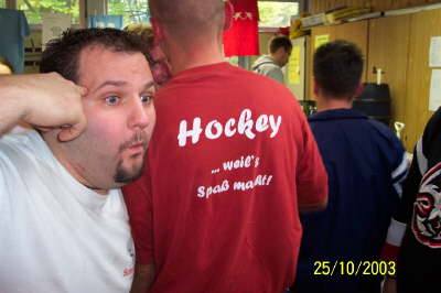 Mittags, kaum in Hürth angekommen, ging es auch sofort los... Nein, nicht mit Hockeyspielen, sondern Uwe, Ex-HTC'er und seit mehreren Jahren Hürther, lud uns erst einmal an die Bar ein, wo die Stimmung bereits auf einem sehr hohen Niveau war.
